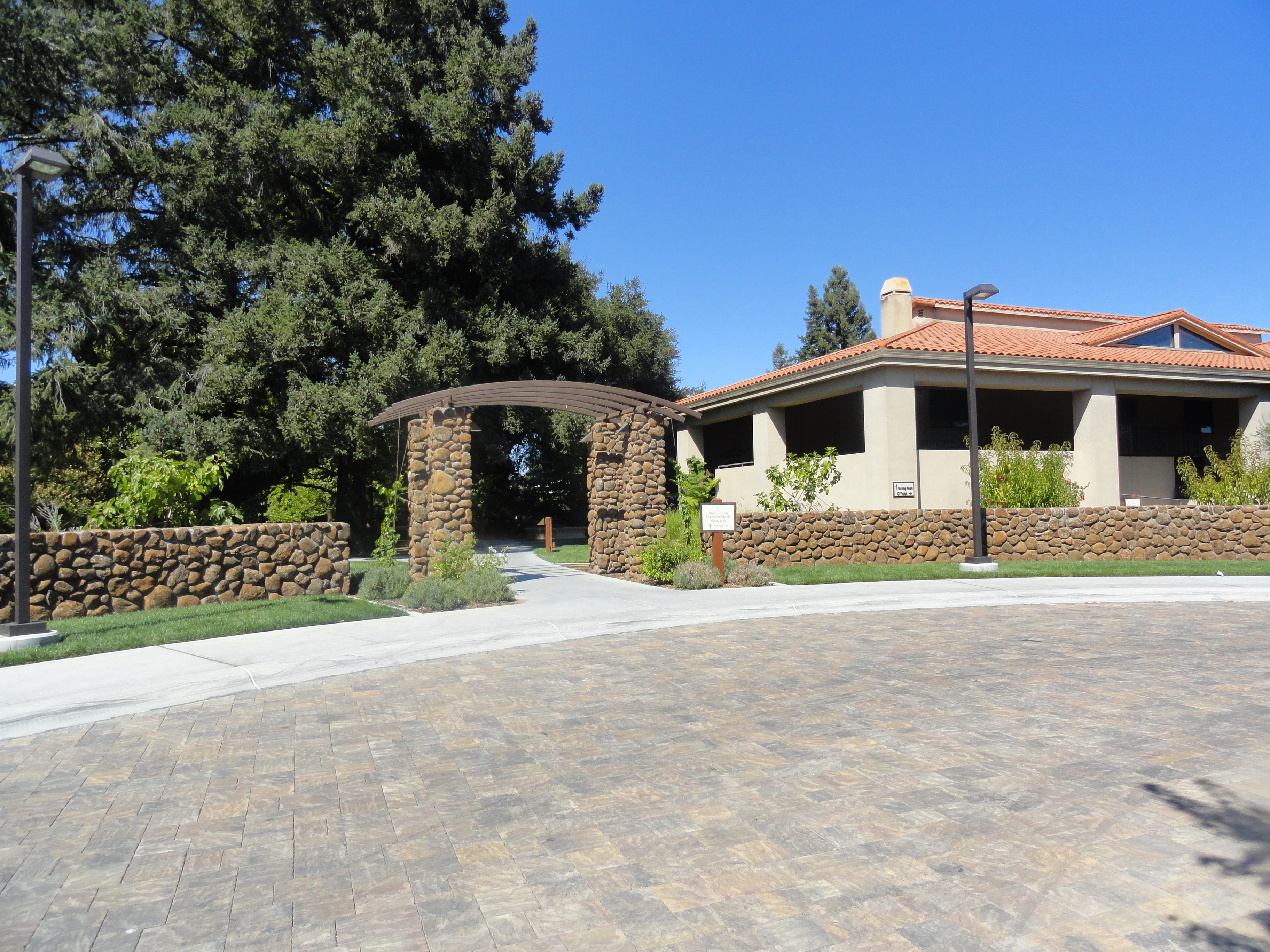 Seghesio Winery is located about ½ mile north of Healdsburg, just off Dry Creek Road.  It is a historic winery, having been family owned and run, until its recent sale, since 1901.  The winery is best known for its award-winning Zinfandels.  Upon entering you will notice a lovely picnic area under the shade of old oak trees.